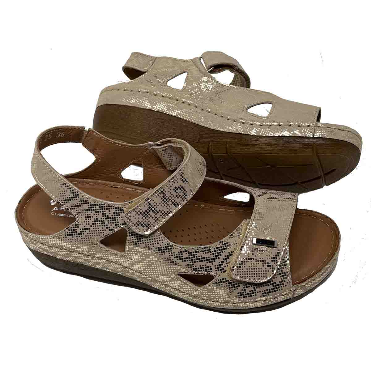 Vital Arch Angela 619 Comfort Therapeutic Sandals in Multi Gold Genuine Leather Print